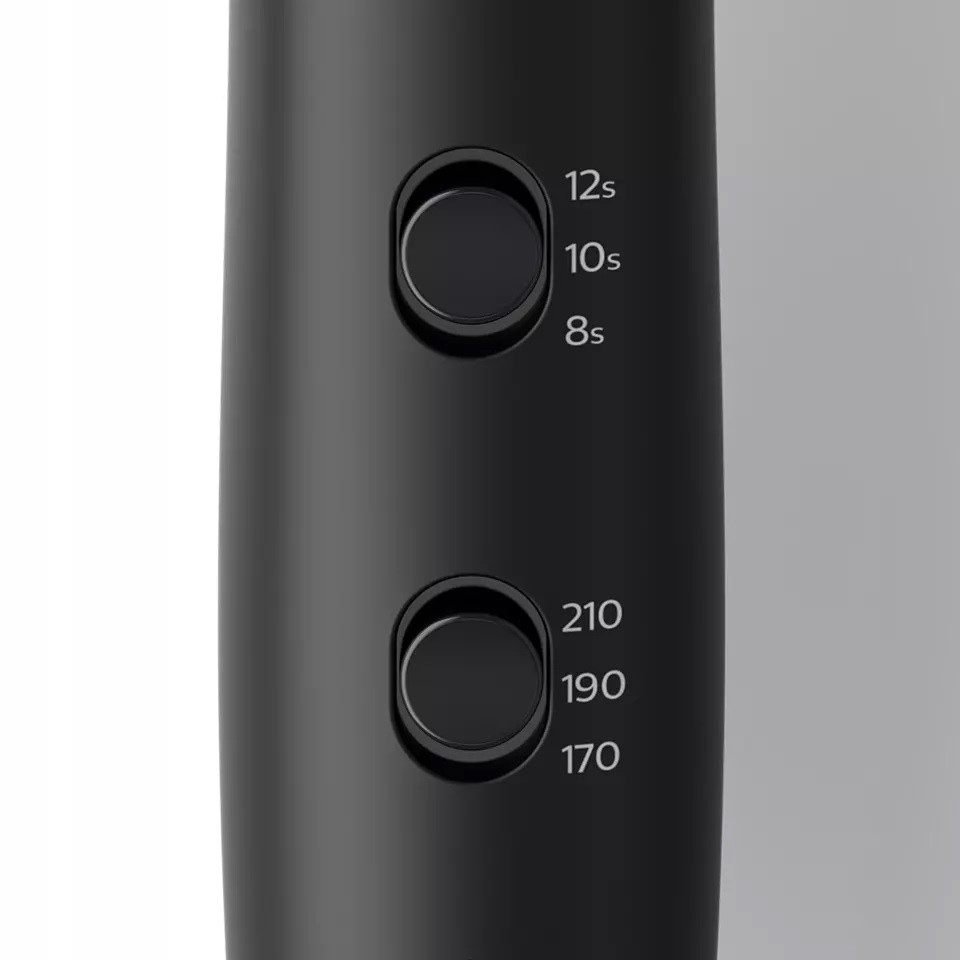 3 ustawienia temperatury (170°C - 190°C- 210°C) i 3 ustawienia zegara (12 s - 10 s - 8 s) pozwalają uzyskać dowolny skręt pasm włosów - od luźnych fal, po drobne loczki na różnych typach włosów. Idealnym rozwiązaniem przy grubszych włosach jest ustawienie wyższej temperatury z wydłużonym czasem utrwalania loków. Natomiast przy włosach wymagających dodatkowej ochrony optymalny jest krótki czas utrwalania w niższej temperaturze.