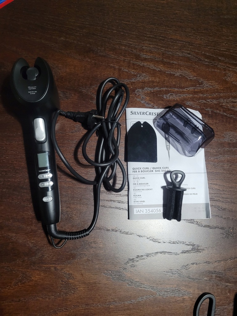 LOKÓWKA SILVERCREST QUICK CURLRL czarna. Powłoka ceramiczna turmalinowa do delikatnej stylizacji włosów. Powłoka ta spełnia dwie główne funkcje: zapewnia jonizację, zapewniając gładką i równą stylizację, a także zmniejsza tarcie, umożliwiając lokówce łatwiejsze przesuwanie się po włosach. Proste zastosowanie. Zapobieganie elektryzowaniu się włosów. Bardzo dobre rozprowadzanie ciepła. Prosta i łatwa aplikacja, naturalne loki za pomocą jednego przycisku, powłoka turmalinowo-ceramiczna do delikatnej stylizacji włosówproste zastosowanie: kosmyki włosów zostają automatycznie wciągnięte i skręcone, możliwość wyboru kręcenia, automatyczne możliwość ustawiania obrotów (5-12, zależnie od typu włosów) 6 ustawień temperatury (130C - 230C w 20C odstępach) szybkie nagrzewanie, sygnał komunikujący koniec skręcania i automatyczny wyłącznik bezpieczeństwa po 60 min, zawiera osłonę, narzędzie do czyszczenia i szablon do włosów. Dane techniczne:
