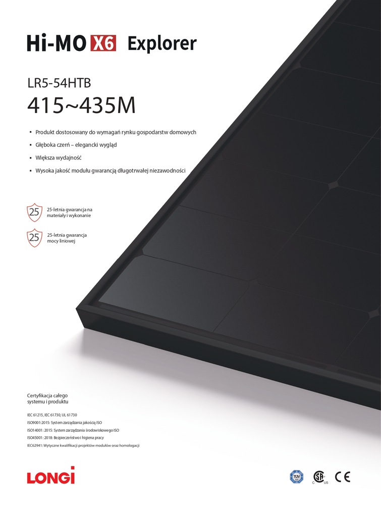 Panel fotowoltaiczny LONGI LR5-54HTB-435M 435Wp Full Black