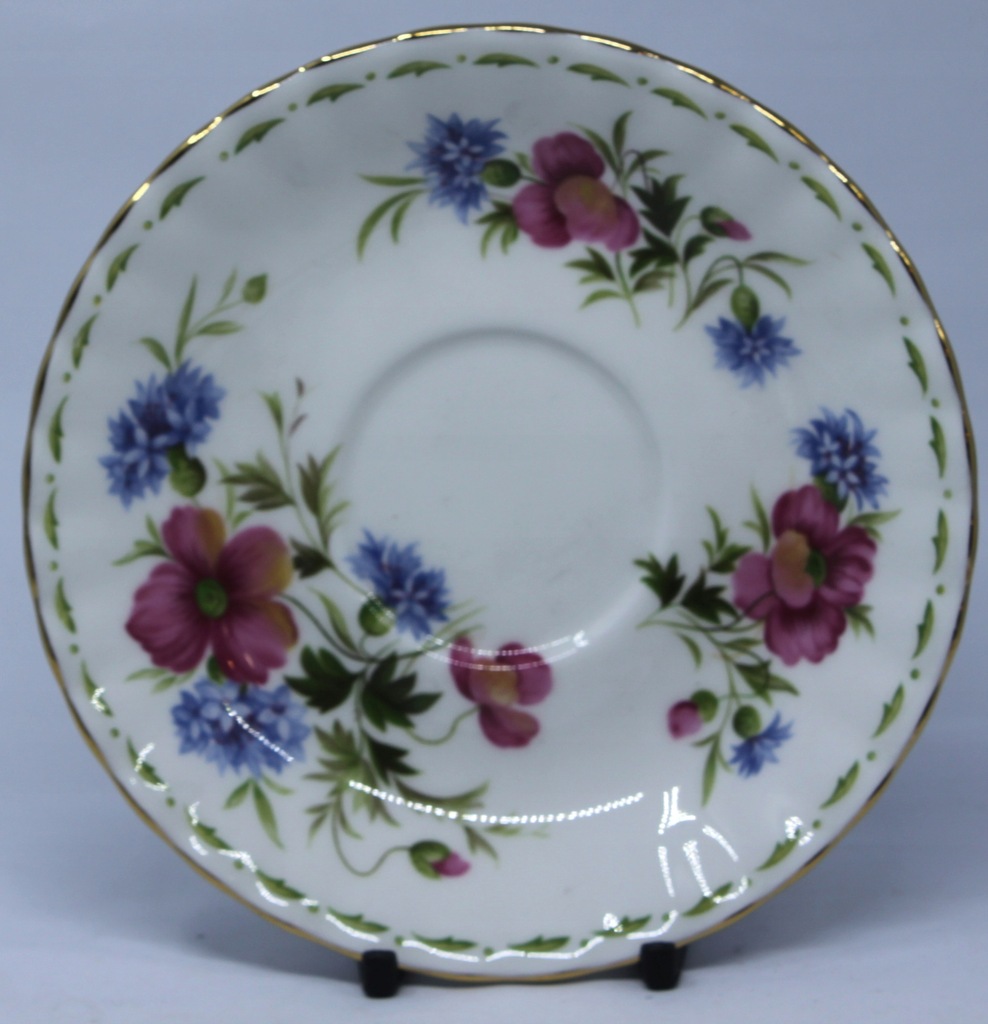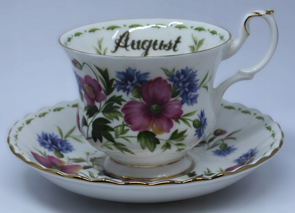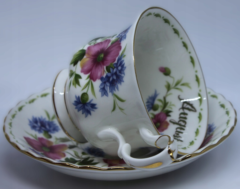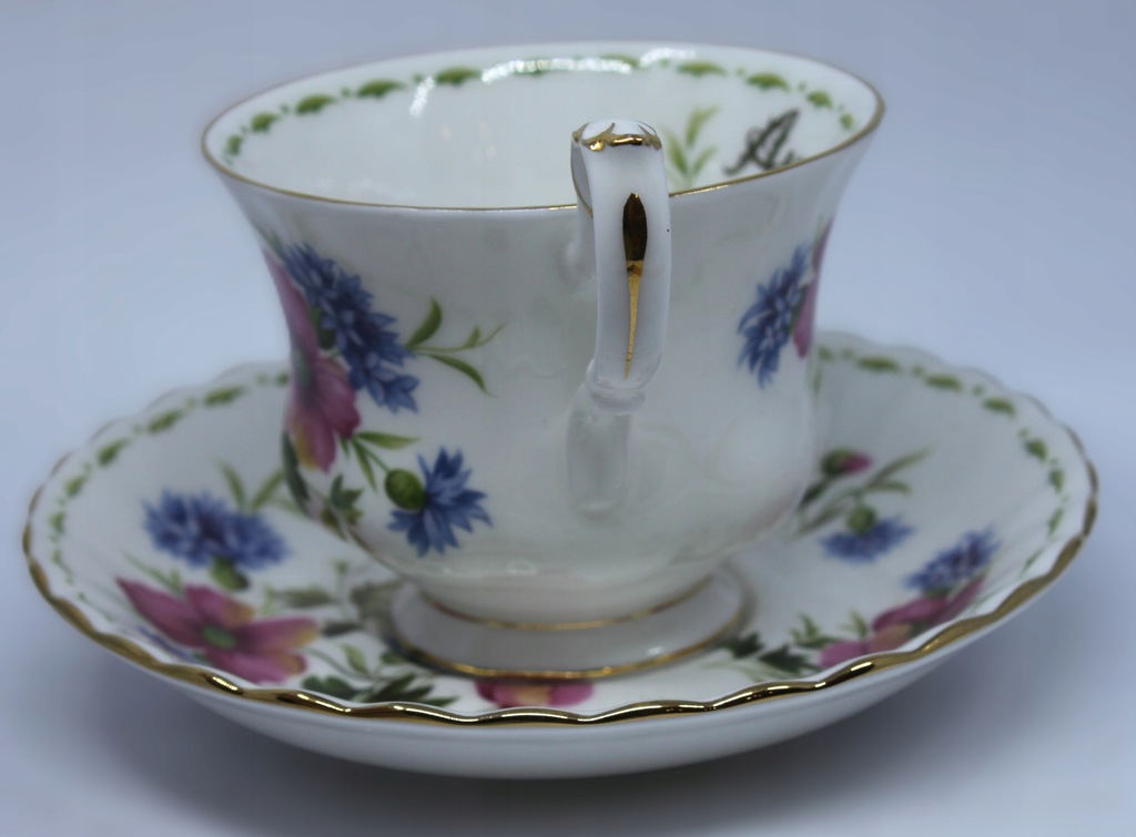 FILIŻANKA ZE SPODKIEM WYKONANA Z KRÓLEWSKIEJ PORCELANY KOSTNEJ, SYGNOWANA