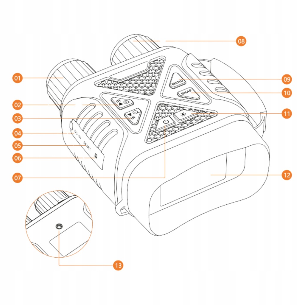 Dzięki możliwości ręcznego wyostrzania obrazu bezproblemowo dostrzeżemy interesujące nas obiekty oddalone od nas nawet do 800m w całkowitej ciemności!