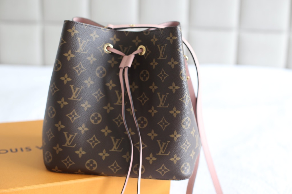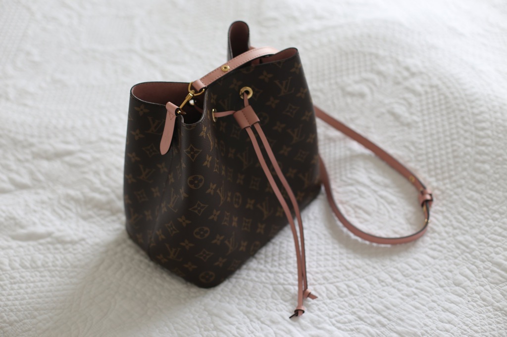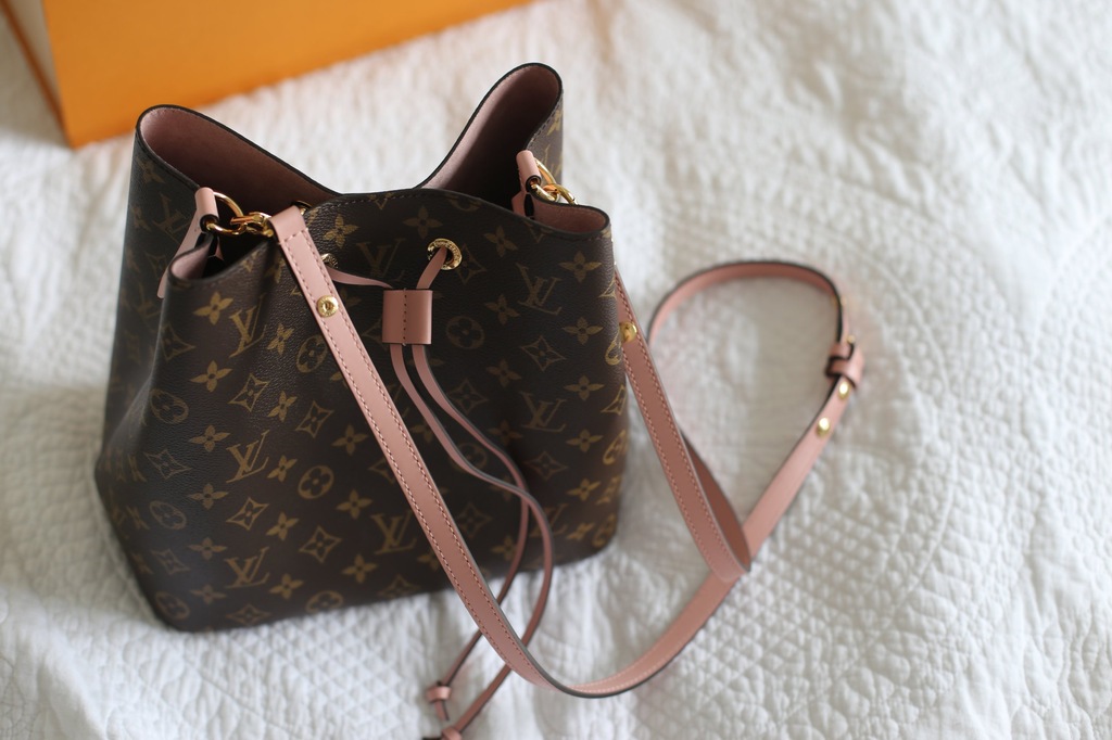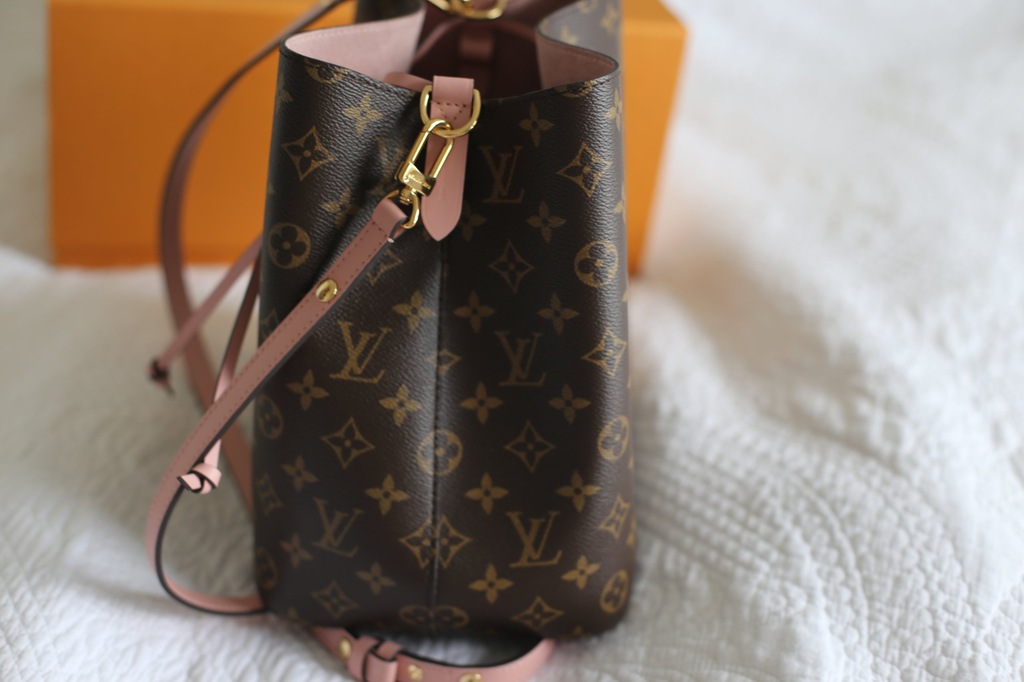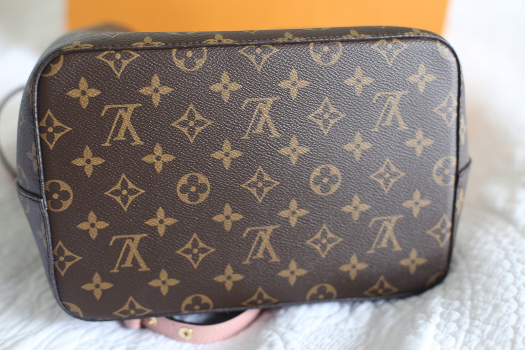 Piękna torebka Louis Vuitton model: NeoNoe w monogramie wykończenie w pudrowym różu. Kupiona na zamówienie. Nie jest dostępna od ręki w butiku. Czas oczekiwania to 6-8 tyg. Kupiona w polskim salonie Louis Vuitton w Warszawie. 22/11/2017. Na 2 letniej gwarancji w całej Europie