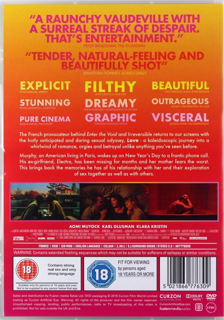 Film wyłącznie dla widzów dorosłych. Zawiera śmiałe sceny erotyczne. Gaspar Noé - francuski reżyser argentyńskiego pochodzenia - jest znany polskim widzom z filmów Wkraczając w pustkę oraz Nieodwracalne. Ten bezkompromisowy i odważny twórca przez wielu światowych reżyserów przywoływany jest jako źródło inspiracji - do jego twórczości odwołuje się m.in. Nicolas Windig Refn. Autorem zdjęć jest stały współpracownik Gaspara Noé, Benoît Debie, który ma na swoim koncie także zdjęcia do Spring Breakers Harmony Korine'a oraz do debiutu reżyserskiego Ryana Goslinga Lost River. Dwaj twórcy połączyli siły, by w śmiały, świeży i wizualnie przełomowy sposób pokazać fizyczną stronę miłości dwudziestolatków. Zaprezentowany na festiwalu w Cannes, film zawiera najodważniejsze w historii kina sceny erotyczne. Dostępny w 2D i 3D. Miłość to oślepiające światło, genetyczna potrzeba, odmienny stan świadomości, ciężki narkotyk, choroba psychiczna, gra o władzę - to sperma i łzy. | Gaspar Noé