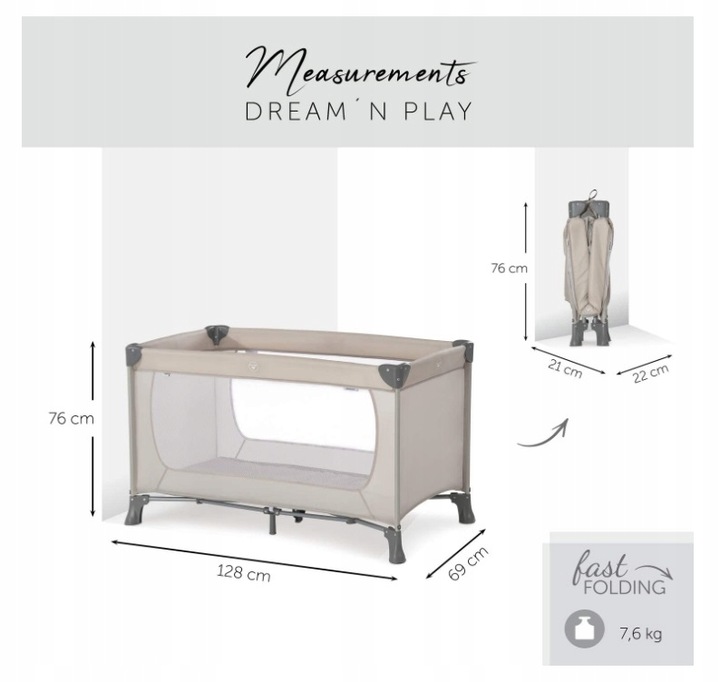MOBILNE – łóżeczko jest proste w montażu i składa się kompaktowo. Dzięki kółkom można je łatwo przesunąć z jednego pomieszczenia do drugiego. Przez siatkowe okna maluch jest zawsze na widoku