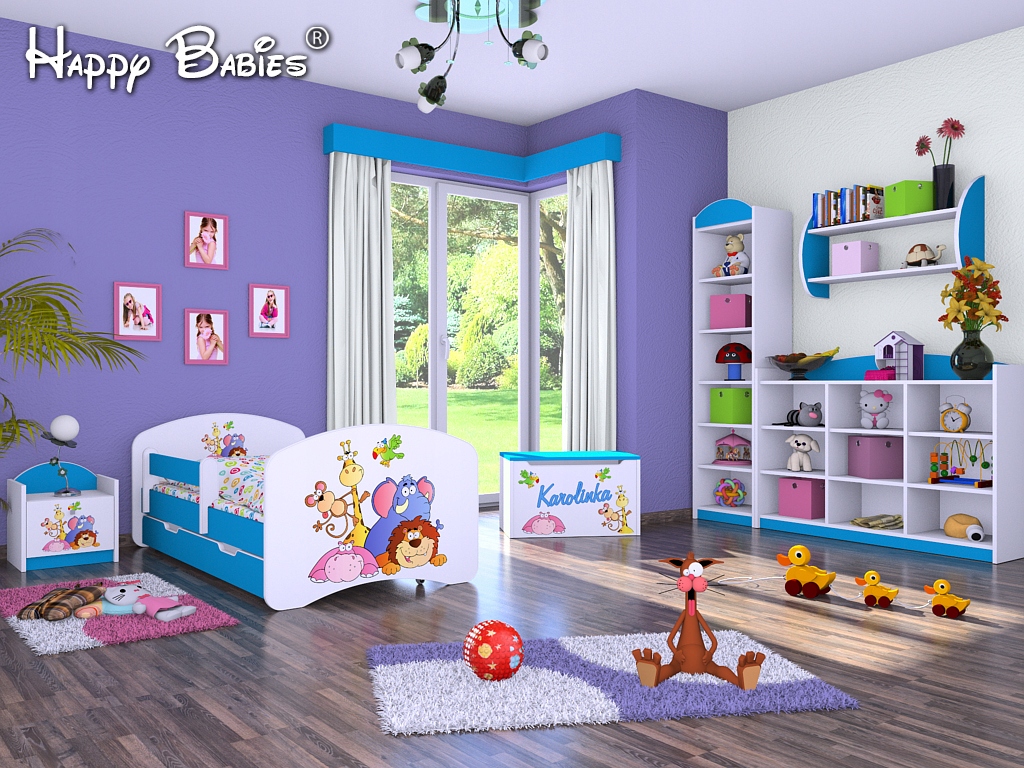 Na tej aukcji kupujesz łóżeczko HAPPY z szufladą w kolorze błękitnym: