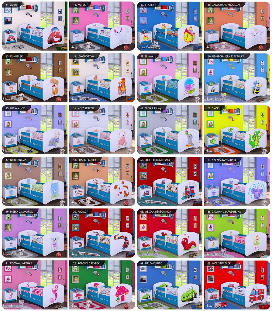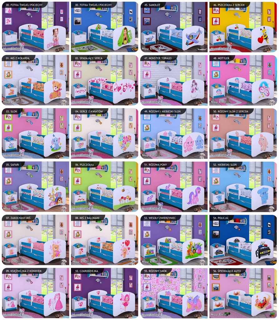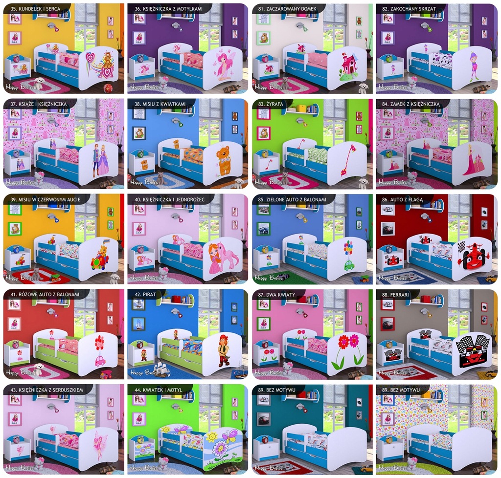 - Kolorowa naklejka - fronty łóżka zalaminowane po całości ECO nadrukiem do wyboru.