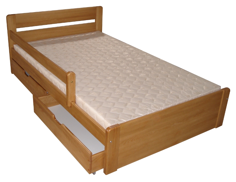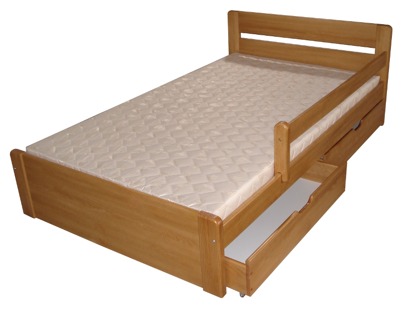 Piękne, bardzo mocne i wykonane z najwyższej jakości materiałów łóżko dziecięce BAMBI PLUS 120x190 ze stelażem, materacem, szufladą dzielona z barierką podwójną długą i barierką podwójną krótką