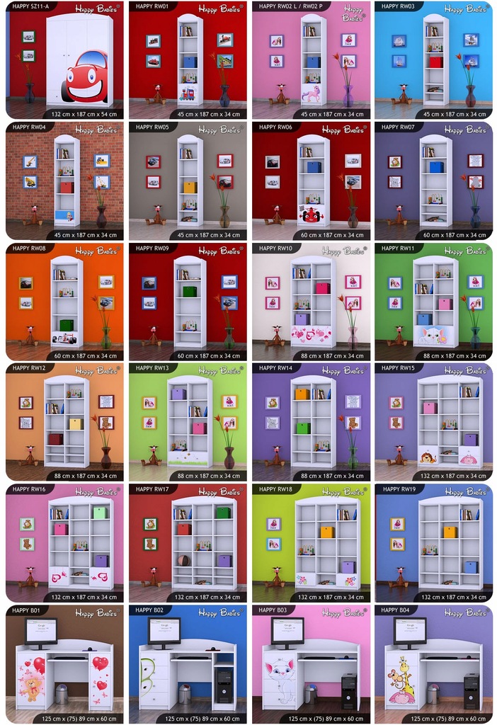 Mogą Państwo wybierać spośród prawie 90 modeli mebli (szafki nocne, kufry na zabawki, komody, regały, szafy, biurka, półki) przeznaczonych do dowolnego zaaranżowania pokoju dziecka.