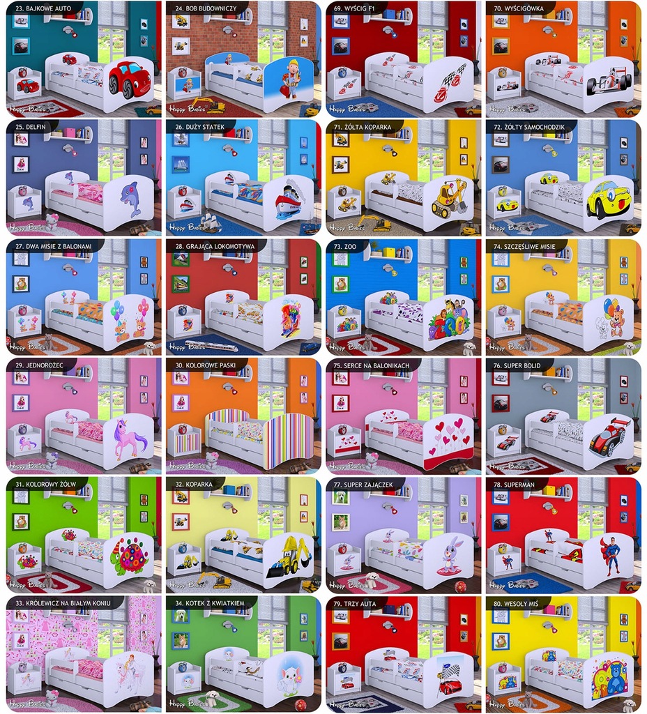 - Kolorowa naklejka - fronty łóżka zalaminowane po całości z EKO nadrukiem do wyboru.