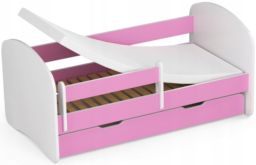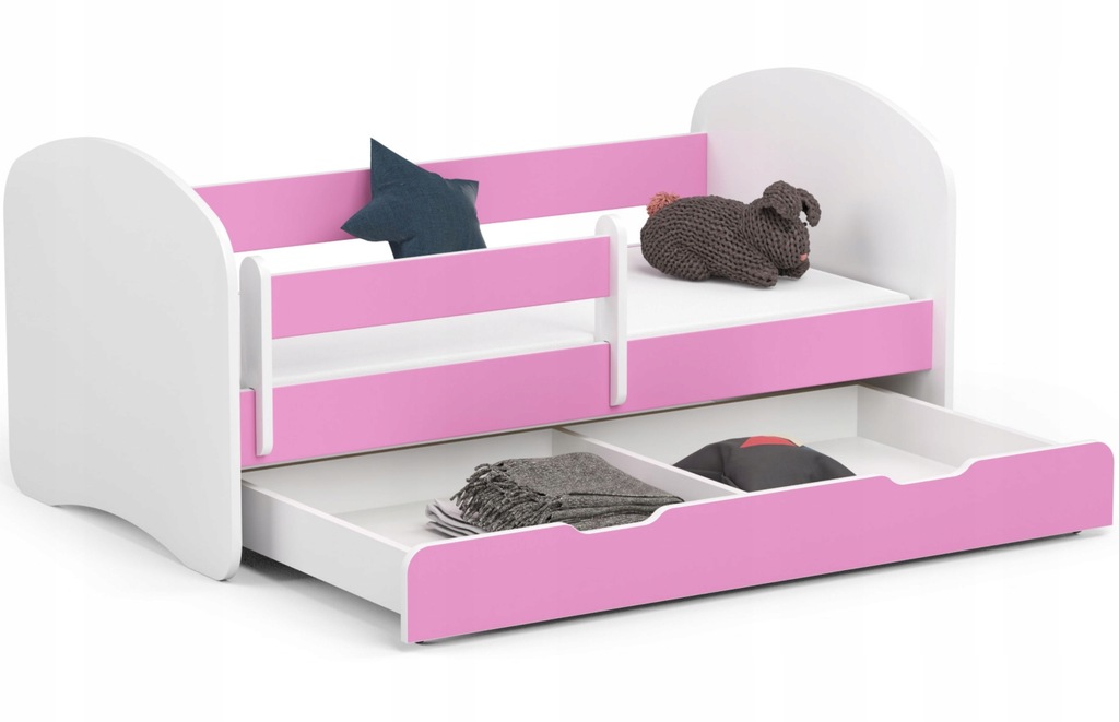 Łóżko dziecięce pojedyncze SMILE 140x70 cm z materacem i szufladą Różowe