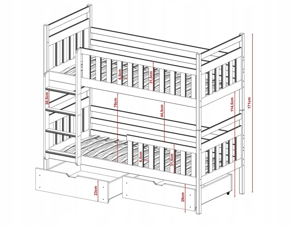 Łóżko piętrowe 2-osobowe MONIŚ 80/180 + materace