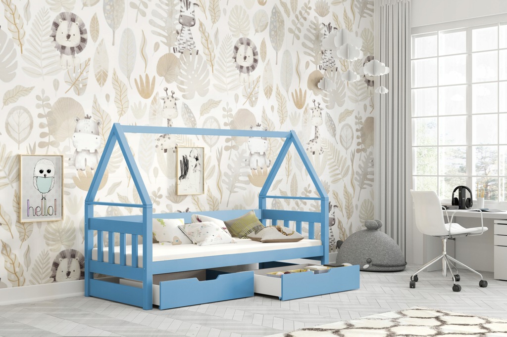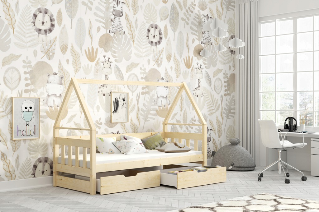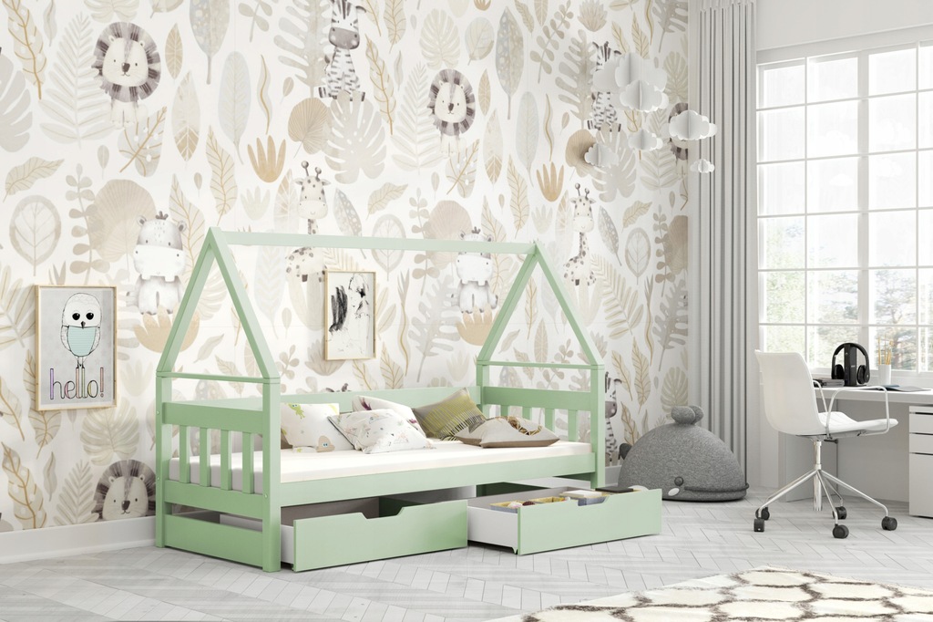 Łóżko wykonane jest z drewna sosnowego. Malowane farbami wodnymi- ekologicznymi.