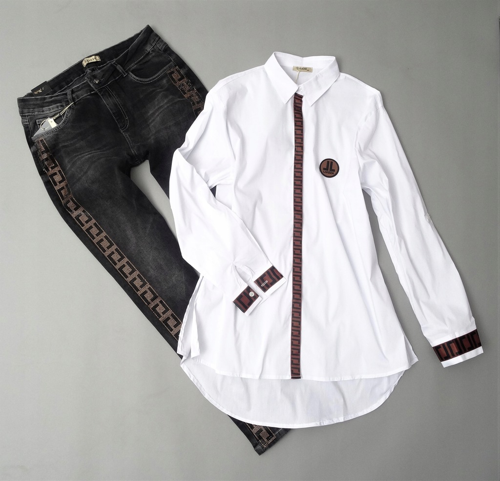 Klasyczna swobodna, dłuższa koszula z długim rękawem