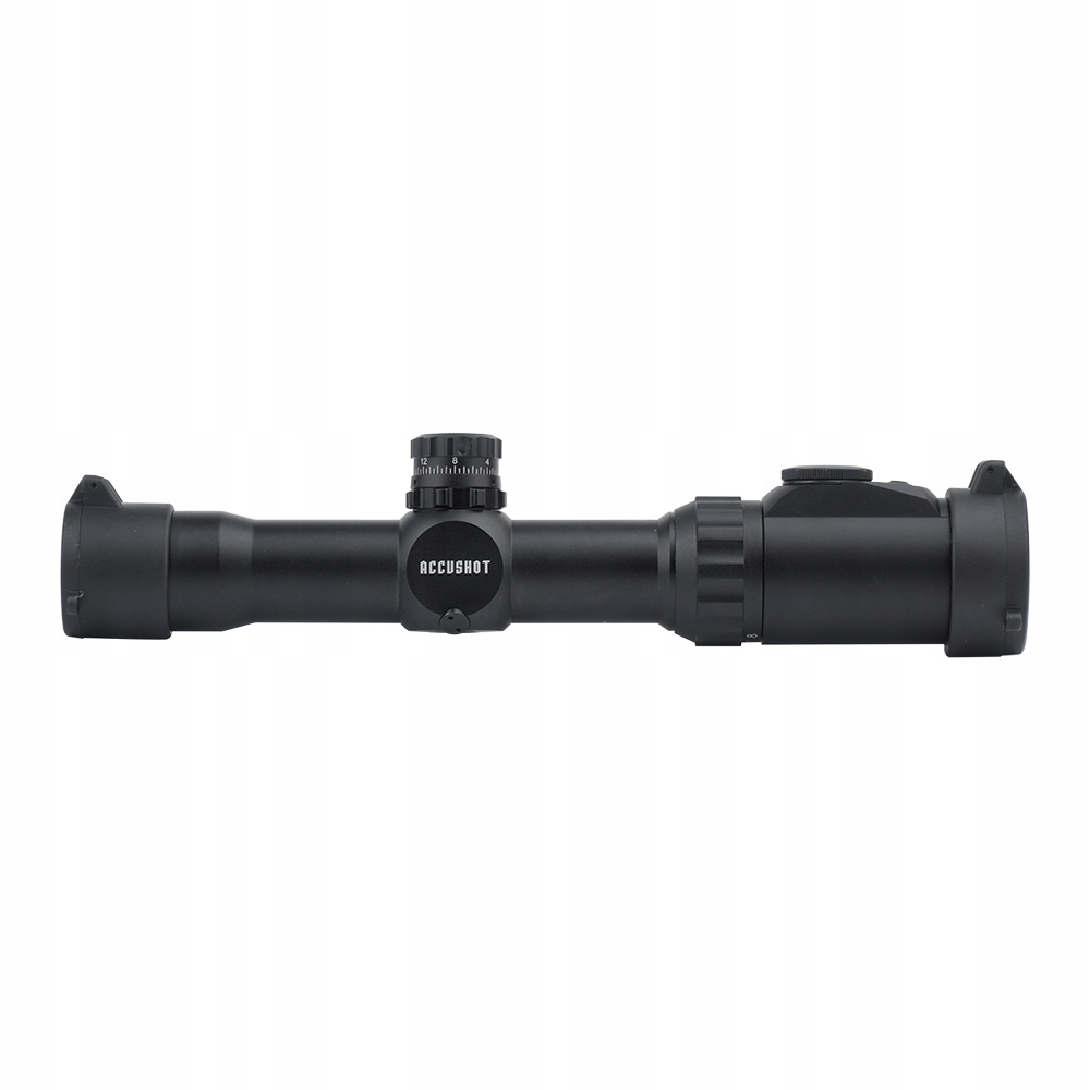 - Zestaw zawiera: Lunetę 1-8X28 AccuShot, montaż offsetowy Picatinny Accu-Sync, parę zaślepek, zapasową płaską śrubę Torx, zapasową wysoką śrube Torx, klucz imbusowy 4 mm, klucz Torx T20, ściereczkę, instrukcję.