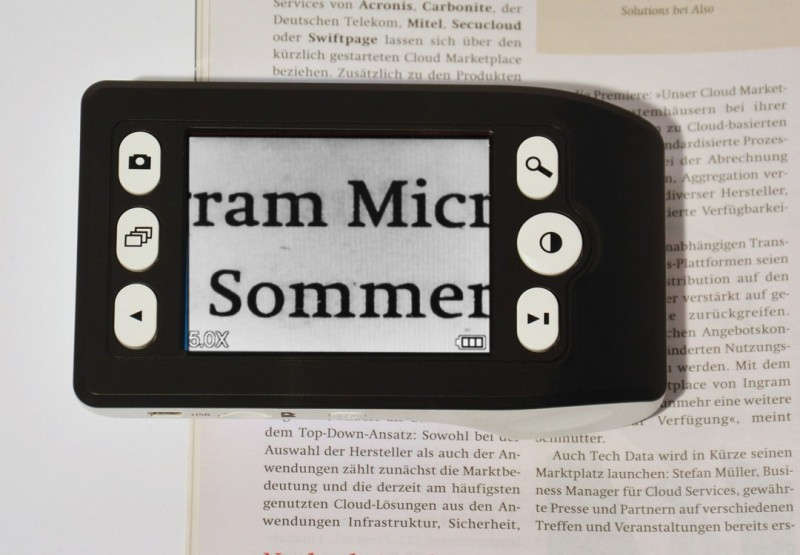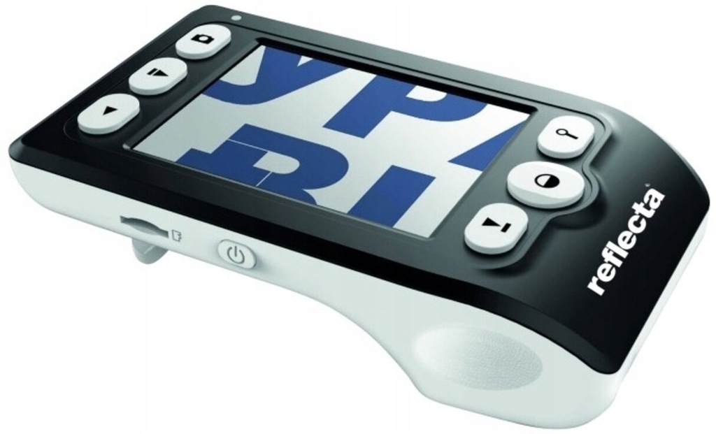 Dzięki cyfrowej lupie Reflecta możesz z łatwością czytać i przeglądać nawet drobne teksty i obrazy w książkach lub czasopismach. Oryginał jest wyświetlany niezwykle ostry przy powiększeniu 5x, 6x, 7,5x lub 10x na 3,5-calowym wyświetlaczu LCD w formacie 4:3. Czy to w biały dzień, czy w nocy – 4 wbudowane lampy LED jako oświetlenie zawsze zapewniają optymalne oświetlenie i warunki do czytania. Lupa cyfrowa posiada również rozkładaną podstawkę.
