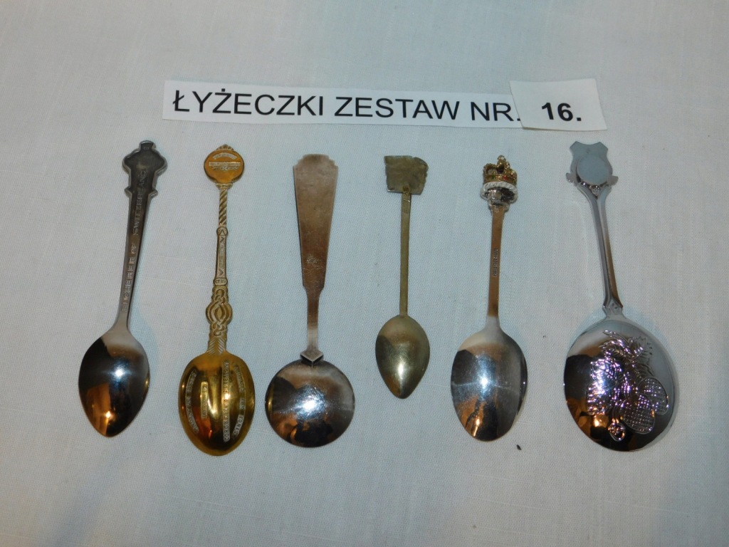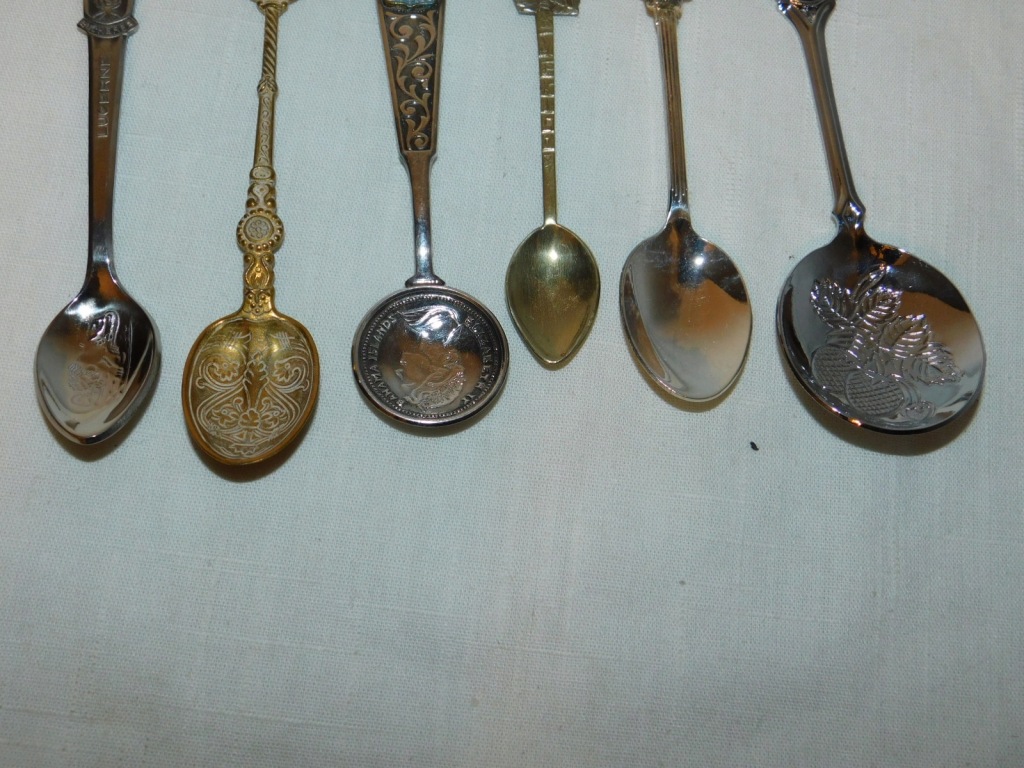 Proponuję Państwu zestaw kolekcjonerskich łyżeczek 6 sztuk. z różnych zakątków świata. Wykonane z metalu w kolorze srebra i złota. Przedmioty bardzo ładne zachowane w dobrym stanie, widocznym na zdjęciach. Polecam i zapraszam do licytacji oraz na podobne moje aukcje.