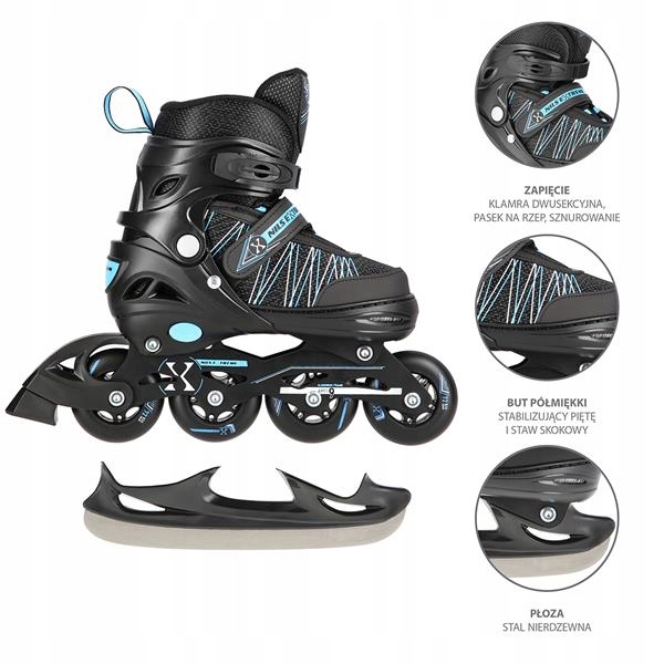 ⚫NH11912 Nils Extreme⚫ to łyżwy przeznaczone dla pasjonatów jazdy. Produkt oferuje 2 możliwości konfiguracji, są to: łyżwy, łyżworolki.