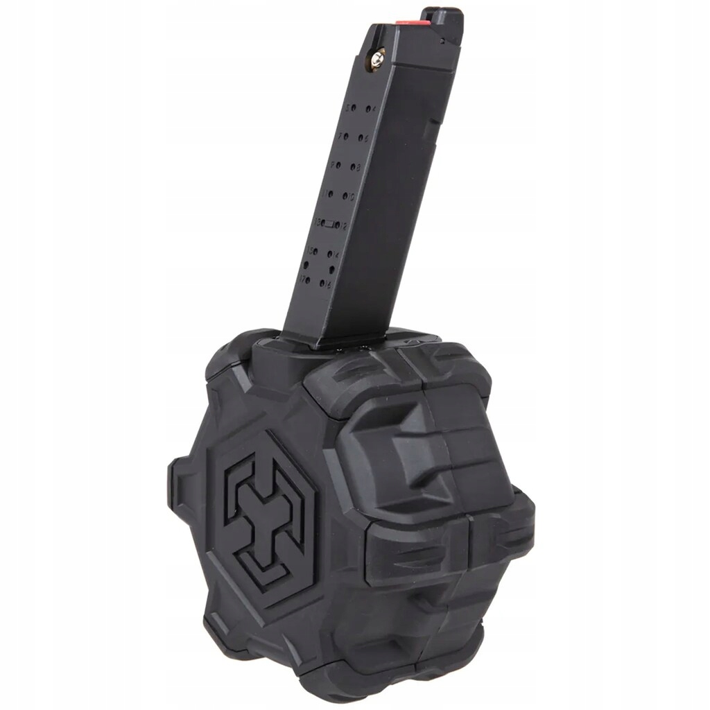 Magazynek bębnowy o pojemności 350 kulek ASG kalibru 6 mm. Przeznaczony do gazowych replik pistoletów typu G17 gen. 3/4.
