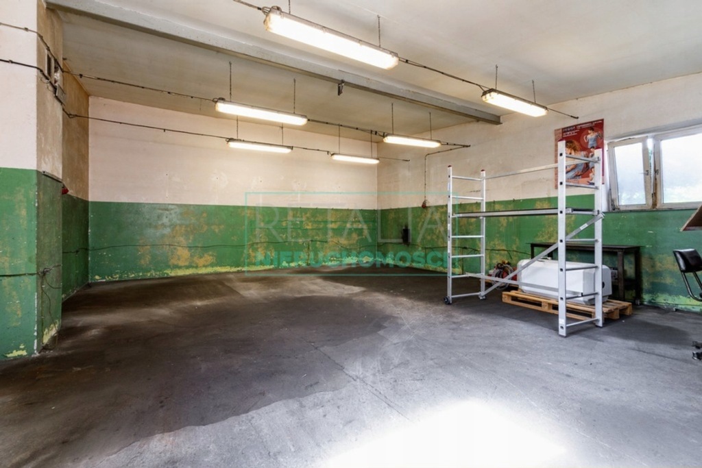 Na zabudowanej działce znajdują się 3 budynki. Pierwszy to hala przemysłowa z dobrze prosperującym warsztatem obróbki skrawaniem (426 m 2) Dół budynku to 2 x hala główna oraz 2 x toaleta, na górze część mieszkalna (80 m 2 + ok 50 m 2 dobudówka). Korytarz, oddzielna toaleta, łazienka, kuchnia z częścią jadalną, 3 pokoje ( 1 przechodni), salon z jadalnią oraz "dobudówka" a w niej sypialnia, łazienka z prysznicem i pokój na górze. Nad całością jest strych (otwarta przestrzeń).