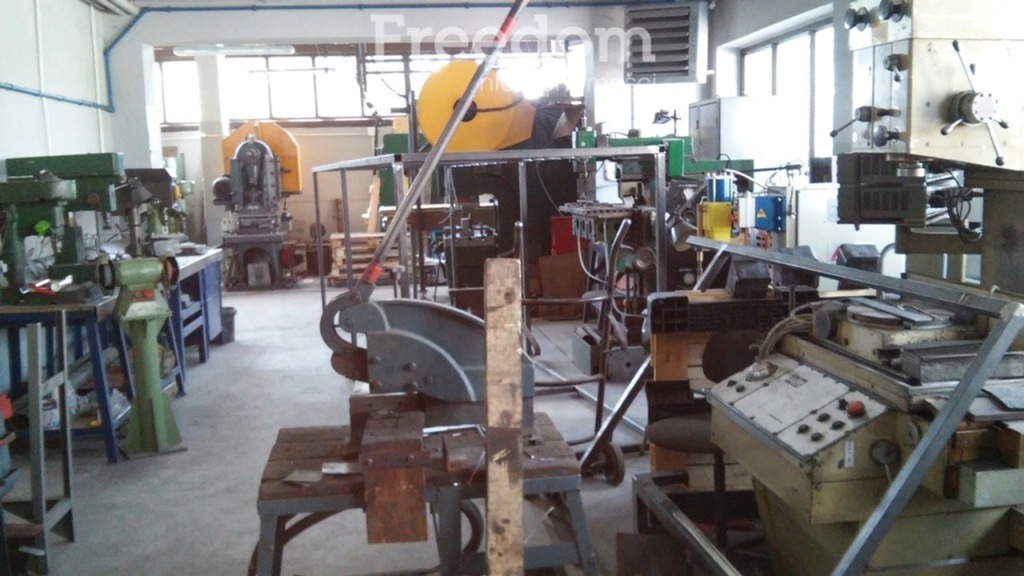 1. Hala produkcyjna nr.1 – pow. 106m2, wys. 5,5m - suwnica - instalacja wyciągów - instalacja centralnego ogrzewania – nagrzewnica wodna powietrza - instalacja sprężonego powietrza Maszyny i urządzenia - prasa mimośrodowa 16 ton - prasa mimośrodowa 40 ton - prasa mimośrodowa 60 ton - prasa mimośrodowa 100 ton - prasa jednokorbowa wysięgowa 100 ton ze sprzęgłem pneumatycznym - przecinarka taśmowa FMB model Phoenix