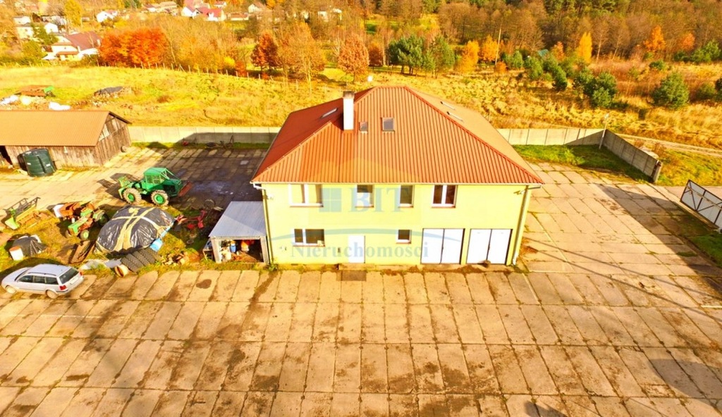 Oferujemy na sprzedaż atrakcyjną nieruchomość o powierzchni 7401 m2, zlokalizowaną w miejscowości Golce, w odległości 12 km od Wałcza. Położona jest przy drodze krajowej nr 163, przy trasie na Czaplinek i Kołobrzeg. W skład oferty wchodzi działka o powierzchni 7401 m2, zabudowana budynkiem o powierzchni użytkowej 275,09 m2. Częściowo ogrodzona, ogrodzenie z płyt żelbetowych na słupkach żelbetowych. Budynek gospodarczo - warsztatowo - socjalno - magazynowy, niepodpiwniczony, z poddaszem. Budynek wykonany w konstrukcji tradycyjnej, fundamenty żelbetowe, ściany murowane z bloczków gazobetonowych. Dach drewniany kryty blachą trapezową. Okna PCV, wrota stalowe. Posadzki pokryte terakotą oraz cementowe. Instalacje: elektryczna oświetleniowa i gniazd wtykowych, wodno - kanalizacyjna przyłączona do szamba, telefoniczna, grzewcza (C.O. z kotła wodnego na paliwo stałe z grzejnikami z rur Faviera), alarmowa, monitoring. Na parterze budynku zlokalizowane są: pomieszczenie na sprzęt rolniczy (z kanałem rewizyjnym na całej długości), dwa magazyny, pomieszczenie gospodarcze, kotłownia oraz komunikacja. Na piętrze znajduje się pomieszczenie biurowe, dwa pokoje, łazienka, WC, komunikacja. Poddasze zostało zaadoptowane zostało do celów mieszkalnych, znajdują się tam dwie sypialnie, kuchnia oraz łazienka. Stan nieruchomości dobry. Dużym atutem działki jest jej lokalizacja, bezpośrednio przy trasie prowadzącej nad morze. Nieruchomość idealnie nadaje się do prowadzenia działalności gospodarczej typu stacja kontroli pojazdów, warsztat samochodowy oraz podobnych. Serdecznie polecamy i zapraszamy do kontaktu.