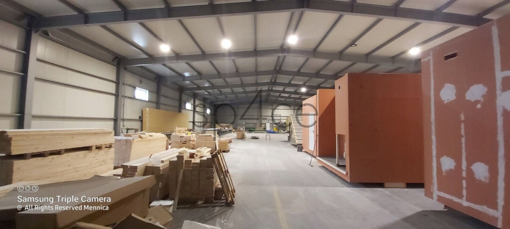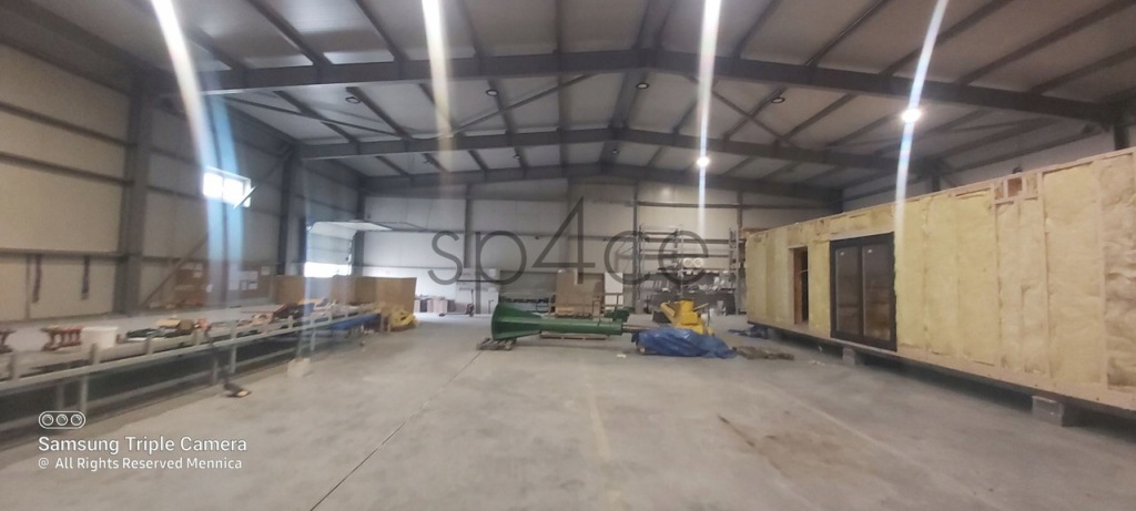 2. Hala produkcyjna - Jest to obiekt jednokondygnacyjny o konstrukcji stalowej dwunawowej. Został wybudowany i oddany do użytku w roku 2008. Posadzki w obiekcie są betonowe, przemysłowe. Ściany wschodnia i południowa wykonane są z płyty warstwowej wypełnionej wełną mineralną, natomiast ściany zachodnia i północna wykonane są z betonu komórkowego. Dach budynku wykonany jest z blachy trapezowej, wełny mineralnej oraz folii. Obróbki blach są ocynkowane. Stolarka okienna w całości wykonana z PCV. W północno-zachodniej części hali na styku z pozostałymi częściami budynku zlokalizowano antresolę. Pod antresolą budynku zlokalizowano rozdzielnią energetyczną i pomieszczenia socjalne. Na piętrze znajduje się pomieszczenie gospodarcze i węzeł cieplny. Wjazd do hali odbywa się od strony wschodniej bramą segmentową z drzwiami. Ponadto, w ścianie południowej zlokalizowane jest wyjście ewakuacyjne. Budynek jest wyposażony w świetliki dachowe z klapami dymowymi uruchamiane automatycznie. Obiekt wyposażony jest także w czujki przeciwpożarowe.