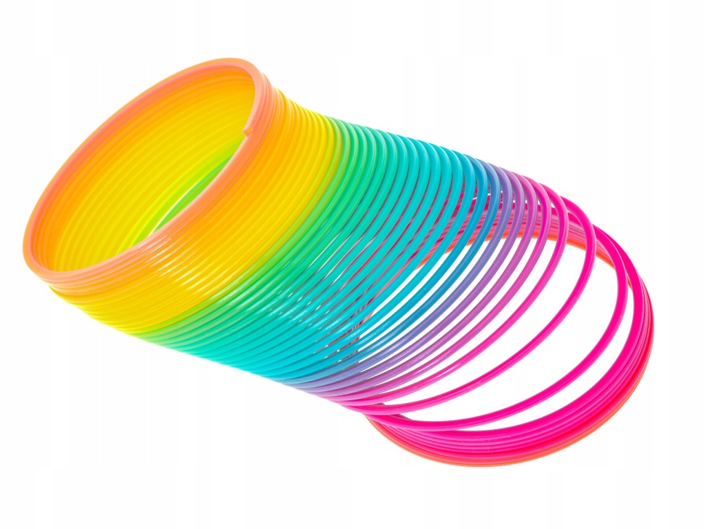 Ta magiczna tęczowa sprężynka przed laty była bardzo popularną zabawką wśród młodzieży. Prawie każdy ją miał i bawił się na różne sposoby, między innymi spuszczając ją ze schodów , aby obserwować jak spada ze stopnia na stopień. Zabawka zapewni mnóstwo relaksu, odstresowania i świetnej zabawy na długie godziny. Sprężynkę również możemy podrzucać, rozciągać lub zwijać. U dzieci zabawka pobudzi kreatywność, oraz korzystnie wpłynie na rozwój zdolności manualnych.