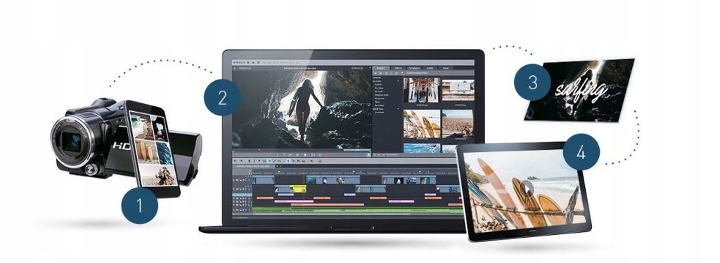Również w zakresie formatów eksportu masz wolny wybór. Zapewnia to możliwości wyświetlania rezultatu pracy na każdym urządzeniu odtwarzającym, udostępniania w mediach społecznościowych oraz nagrania na płytach DVD i Blu-ray.
