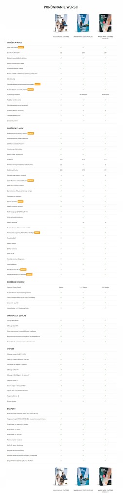 - Eksport: Dysk AVCHD, Płyty Blu-ray, DVD