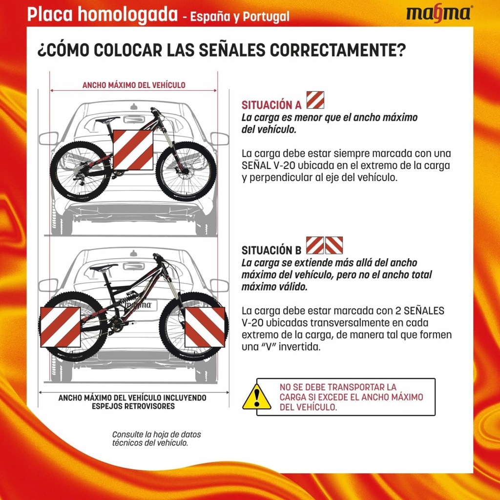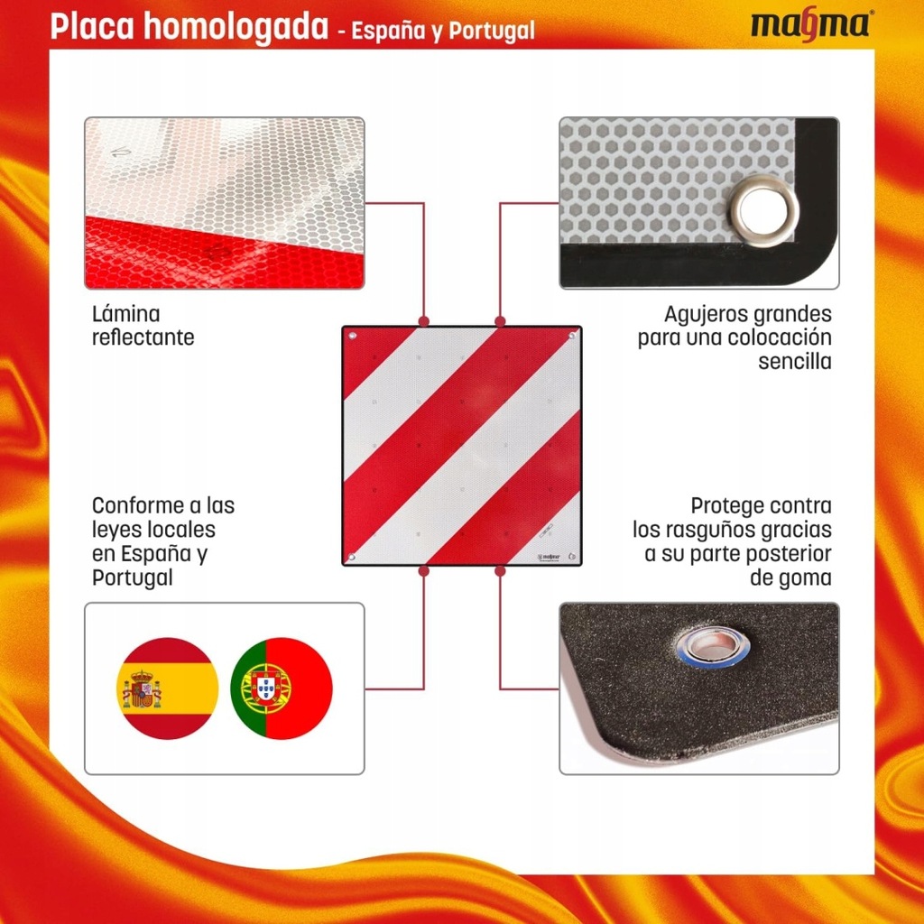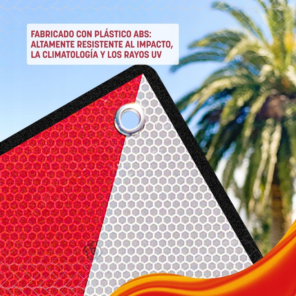 - Jakość: której można zaufać – ta tabliczka jest homologowana dekretem królewskim 2822/1998 z Hiszpanii. Spełnia przepisy ustawowe dotyczące transportu nieporęcznych ładunków.