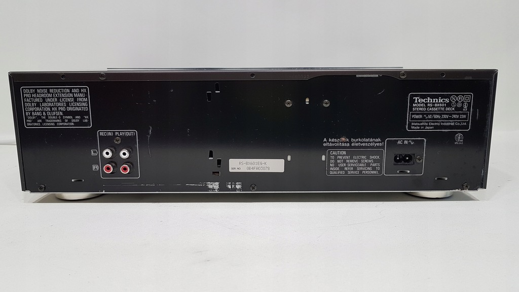 Zapraszam do zakupu magnetofonu kasetowego marki TECHNICS model RS - BX601. Magnetofon trójgłowicowy z automatyczną kalibracją taśm, bardzo skuteczny brzmieniowo i to jest jego cecha. Sprzęt całkowicie sprawny bardzo ładnie nagrywa, odtwarza i przewija. Sprzęt po kompletnym przeglądzie - wymieniony wyślizgany pasek na nowy najlepszej jakości ,zweryfikowany zapis / odczyt / kalibracja, ogólna konserwacja jak i został oczyszczony tor przesuwu taśmy jak i cała komora kasety, pełen serwis przełączników i potencjometrów. W zestawie wysokiej klasy nowy przewód zasilający. Super extra bezpiecznie spakowana wysyłka w cenie. Polecam.