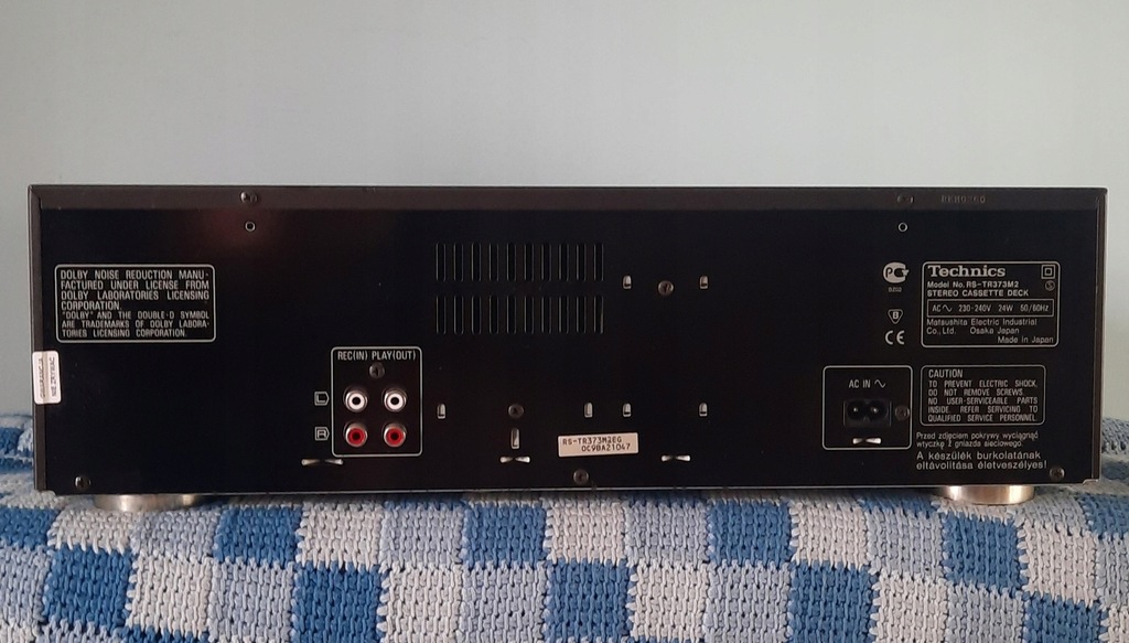 Sprzedam magnetofon dwukasetowy TECHNICS model RS-TR 373 MK2. Model bardzo rzadko spotykany w wersji Mark II. Od dnia zakupu w 2001r w posiadaniu członka mojej rodziny, kupiony jako nowy. Od kilku lat w moim posiadaniu. Bardzo zadbany, w bardzo dobrym stanie technicznym. Wszystkie funkcje działają bardzo dobrze. Obecnie używany tylko w weekendy. Po serwisie w maju zeszłego roku gdzie został wyczyszczony, nasmarowany i skalibrowany. Wymieniono wszystkie paski oraz rolki ciągnące. Zostały rozmagnesowane głowice. Fotki pokazują sprzedawany magnetofon, wnętrza kieszeni na kasety oraz instrukcję obsługi. Kieszenie otwierane i zamykane automatycznie. Ma wiele przydatnych funkcji. Dolby B i C, autorewers w obu kieszeniach. Nagrywanie jest tylko w prawej kieszeni, możliwe też z podwójną prędkością. Oryginalny JAPOŃSKI wyrób producenta cenionego za jakość i niezawodność swoich sprzętów. W sieci jest możliwość dokupienia pilota do tego modelu który steruje obiema kieszeniami magnetofonu - pilot jest od wieży i steruje również innymi segmentami. Mile widziany odbiór osobisty w KRAKOWIE. Wysyłka tylko kurierem. Po solidnym spakowaniu nie zmieści się do paczkomatu. Polecam.