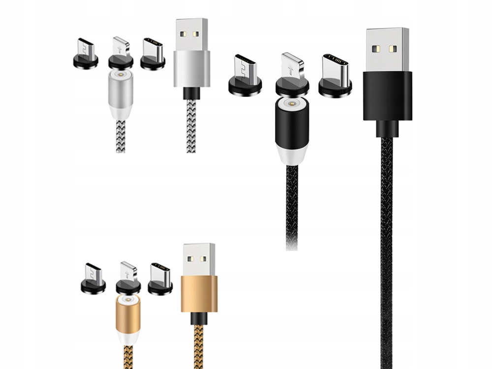 Magnetyczny kabel 3W1 Micro/USB-Typ C/Lightning 1M