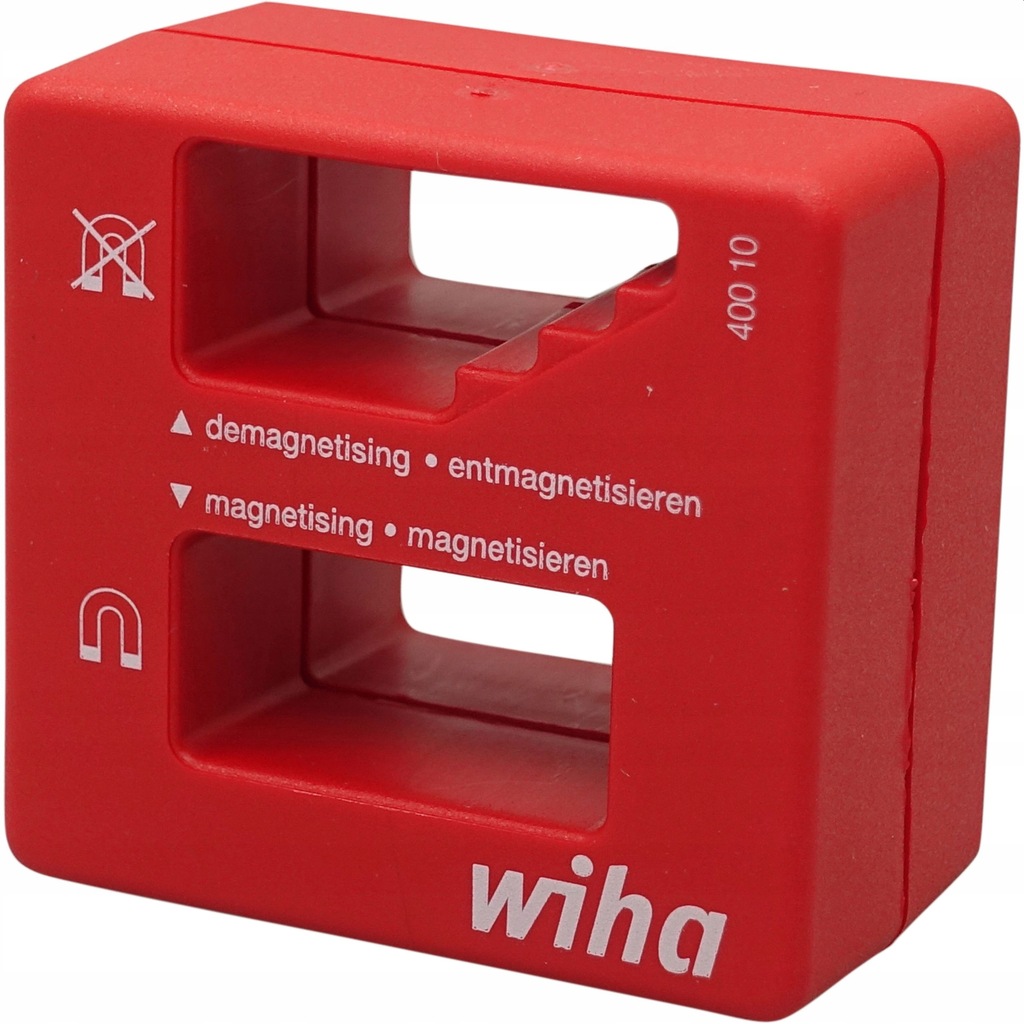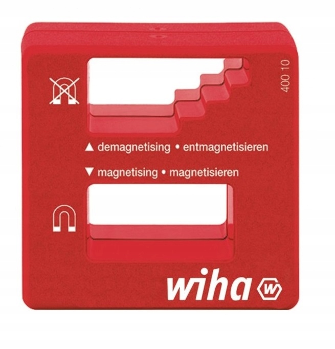Podczas wkręcania często zdarza się, że śruba upada lub zostaje zgubiona. Problemowi temu przeciwdziała magnetyzer Wiha. Szybko i łatwo umożliwia namagnesowanie końcówki śrubokręta, dzięki czemu można łatwiej mocować śruby i małe elementy. W celu rozmagnesowania śrubokręt jest przesuwany w kilku krokach, aż zostanie rozmagnesowany. Mocny, stały magnes narzędzia jest niezwykle trwały i jest również idealny do magnesowania pęset oraz innych stalowych narzędzi.