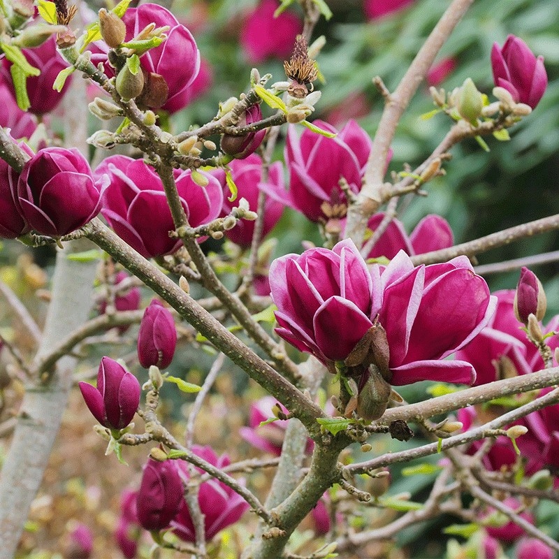 Niesamowita odmiana magnolii o przepięknym, ciemnofioletowym, wpadających w bordowe i czerwone odcienie tonie. Zdecydowanie wyróżnia się oryginalnością wśród innych odmian magnolii. Dorasta do około 3-4 m wysokości. Kwiaty pojawiają się na przełomie kwietnii i maja, przed rozwojem liści, są wzniesione, bardzo duże. Co ważne ta odmiana bardzo szybko wchodzi w kwitnienie. Preferuje gleby świeże, próchniczne, dość żyzne o odczynie lekko kwaśnym oraz stanowiska słoneczne lub częściowo zacienione. Liście są duże, skórzaste, ciemnozielone, natomiast jesienią przebarwiają się na żółto. Magnolie należą do niezwykle dekoracyjnych roślin, posiadają jedne z najpiękniejszych kwiatów o delikatnym zapachu. Jako młode sadzonki są narażone na wiosenne przymrozki z racji wczesnego kwitnienia. Z wiekiem nabierają odporności. W celu zapobiegania skutkom przymrozków już na początku należy wybrać jej miejsce ciepłe i zaciszne, osłonięte od wiatru. Świetnie nadaje się do każdego ogrodu, gdzie urozmaici każdy jego zakątek. Odmiana szczególnie polecana kolekcjonerom i pasjonatom ogrodnictwa.