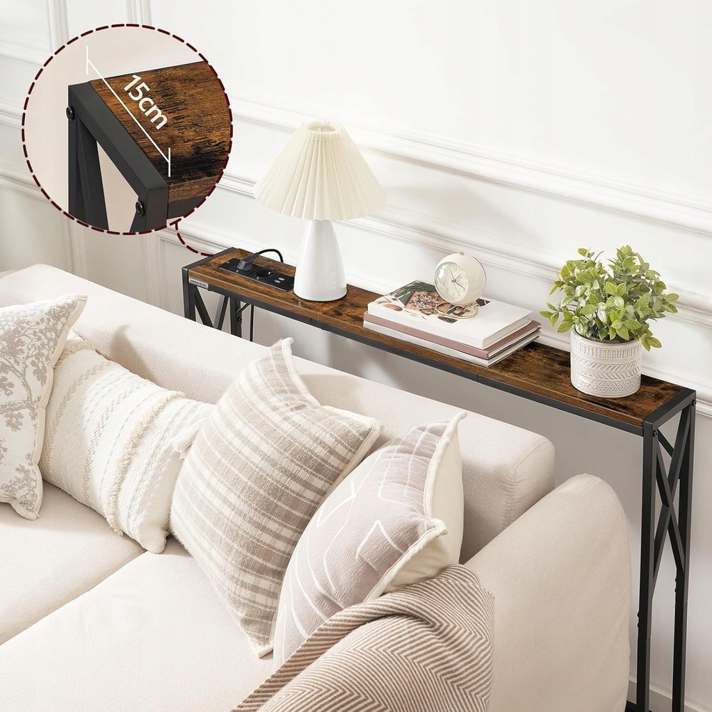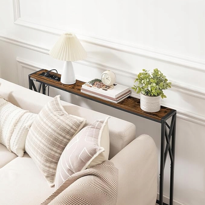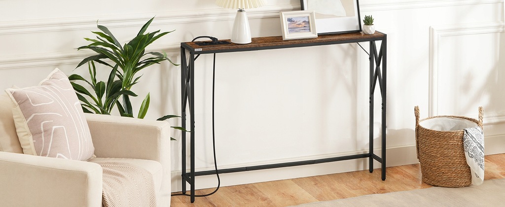 - Solidny i trwały: metalowa rama, wysokiej jakości płyta wiórowa, konstrukcja w kształcie litery X oraz wzmocnienia wzmacniające, zabezpieczenie przed przechyleniem – te elementy sprawiają, że stolik konsolowy jest stabilny i trwały, o maksymalnym obciążeniu 20 kg