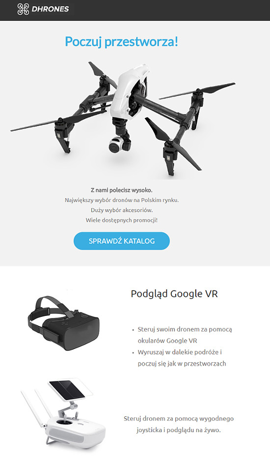 - Responsywny szablon email dostosowujący się wielkością do wszystkich urządzeń,