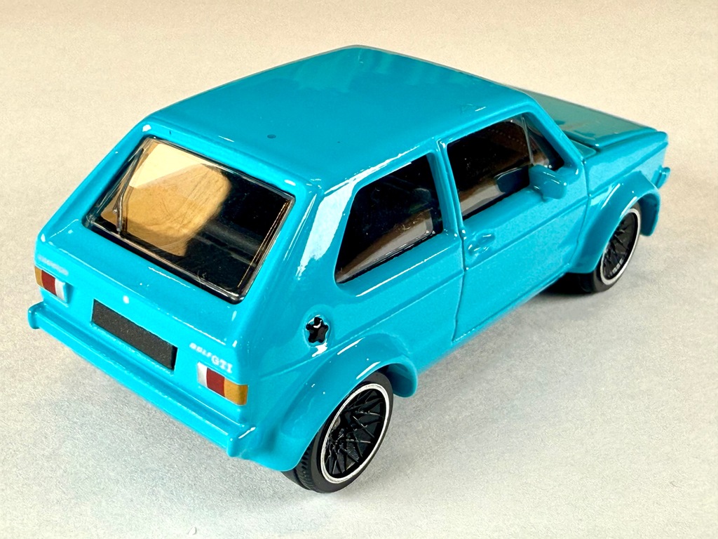 - Charakterystyczne cechy: otwierana maska, dokładnie odwzorowany silnik, oznaczenie „Golf GTI” z tyłu