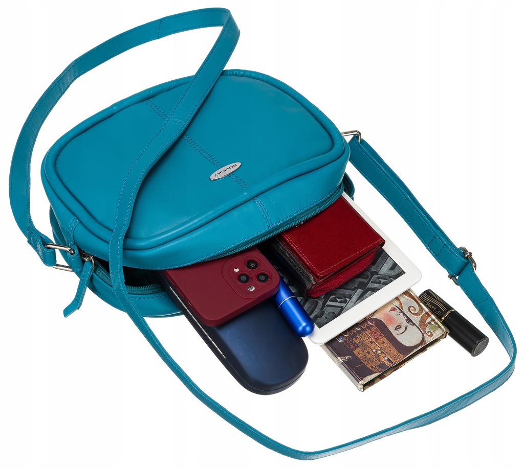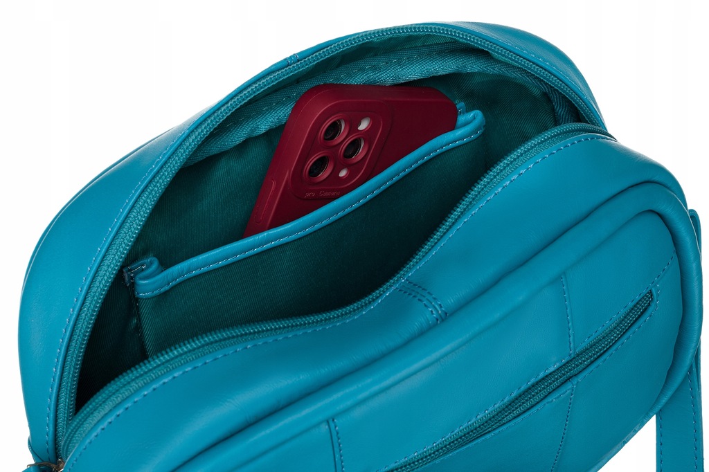 Listonoszka posiada 1️⃣ obszerną komorę zamykaną na suwak, w środku której znajdują się 2️⃣ dodatkowe kieszenie: