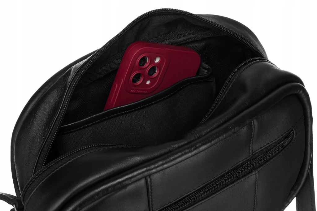 Listonoszka posiada 1️⃣ obszerną komorę zamykaną na suwak, w środku której znajdują się 2️⃣ dodatkowe kieszenie: