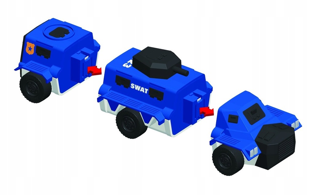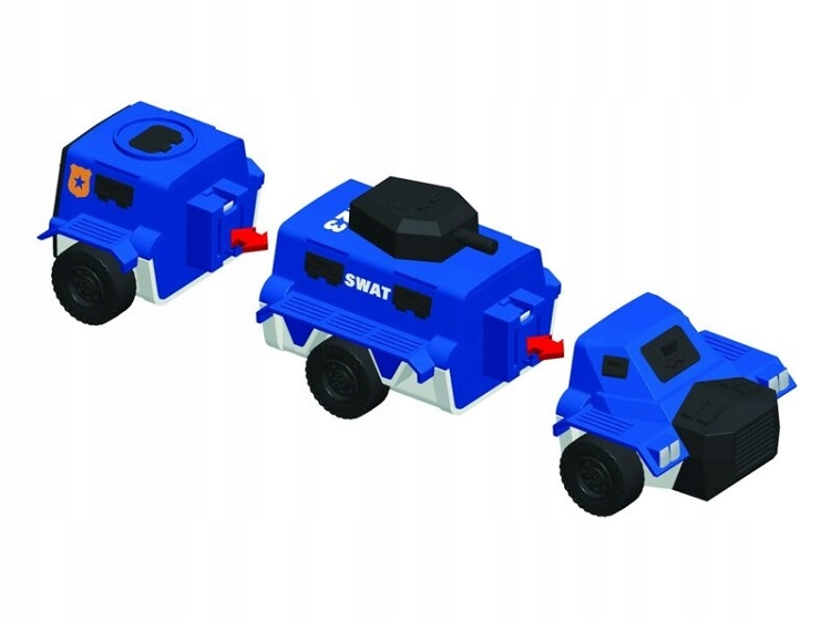Pojazdy policyjne stanowią motyw przewodni zestawu klocków magnetycznych Malblo, które można dowolnie rozbudowywać i składać, by zaprojektować auta o zupełnie nowym, niecodziennym wyglądzie! Opakowanie skrywa łącznie 3 pojazdy, składające się z magnetycznych modułów, przy pomocy których każdy można szybko wymontować i połączyć z kolejnym. Podczas zabawy maluchy muszą wykazać się nie lada zręcznością i kreatywnością, szczególnie że do zbudowania jest aż 100 różnych kombinacji poszczególnych konstrukcji.