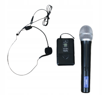 - 2-kanałowy zestaw mikrofonowy UHF z dynamicznym mikrofonem ręcznym oraz nagłownym