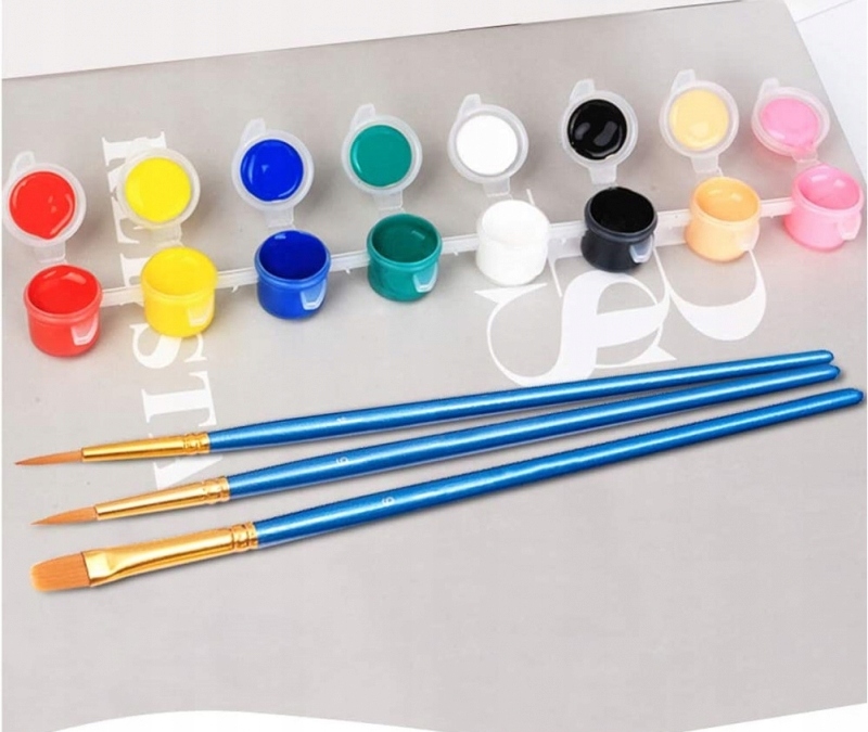 W zestawie także 3 pędzelki z różną grubością, co ułatwi nakładania farby.