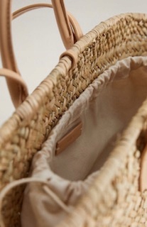 Słomiany kosz z podwójnymi rączkami.