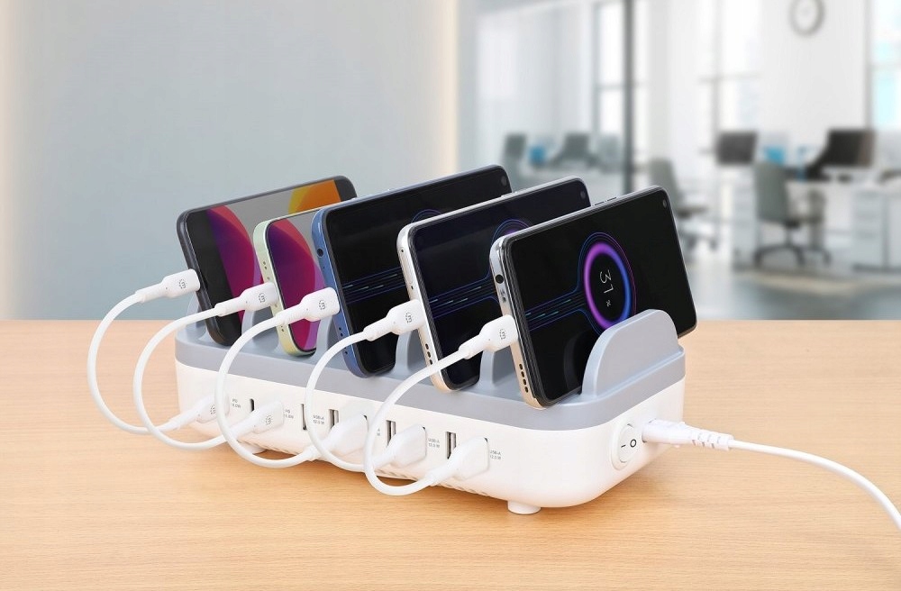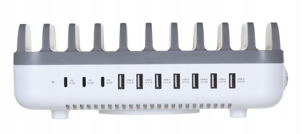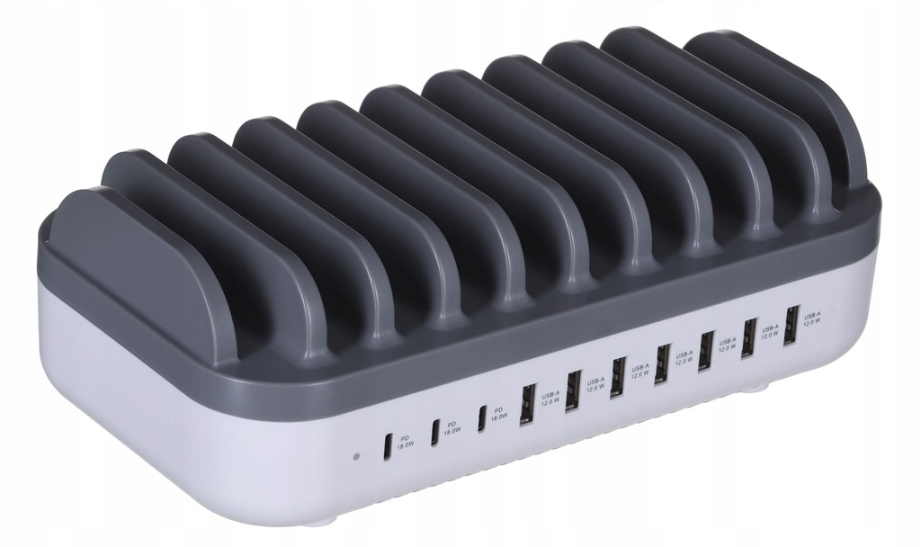 - Manhattan 10-Portowa Stacja Ładująca Zasilająca 120W 3x USB-C PD 7x USB-A