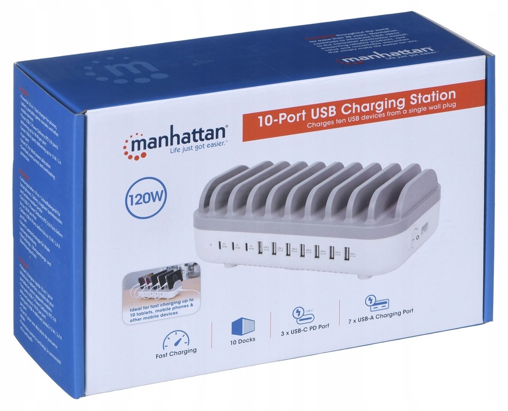 MANHATTAN 10-PORTOWA STACJA ŁADUJĄCA USB 120W 3X U (17614640944)