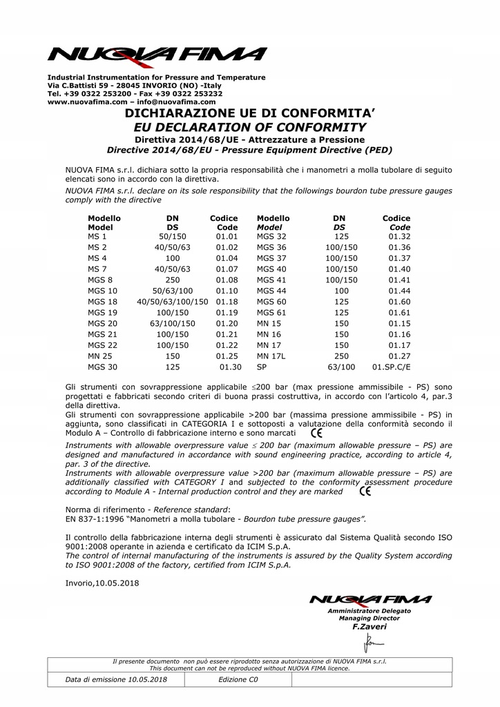 Klasyfikacja Technika pomiarowa > Manometry glicerynowe > Manometry DN100