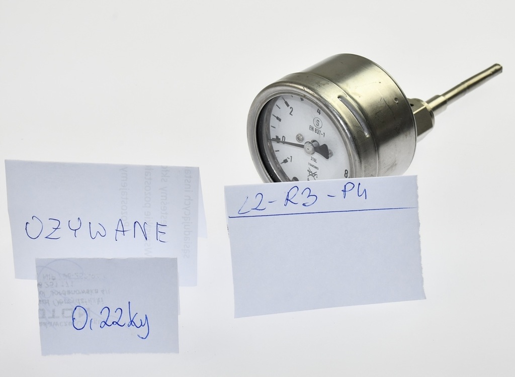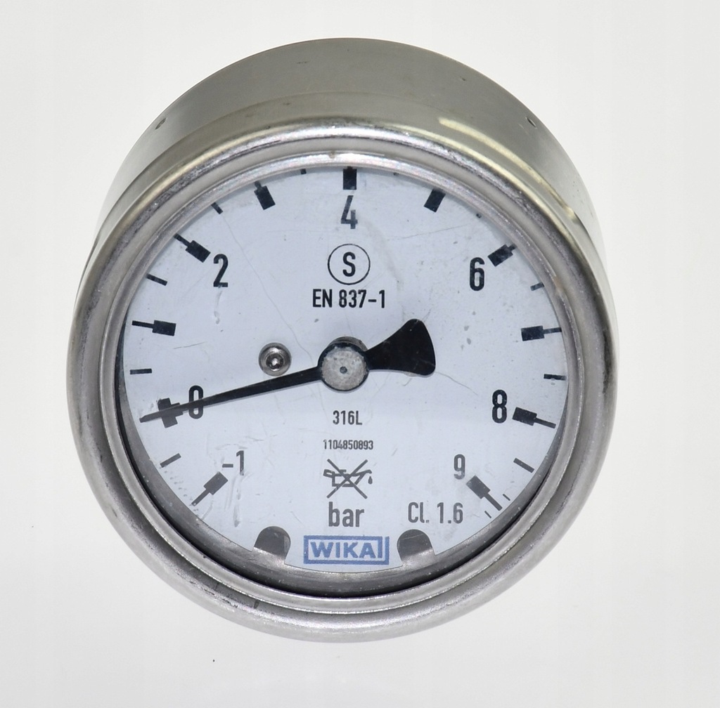 Używany, całkowicie sprawny Manometr firmy WIKA na zakres do 9 barów, także w podciśnieniu do -1 bar. Przeznaczony do instalacji ultraczystych z gazami także agresywnymi. Złączka VCR firmy Swagelok 1/4''. Wszystkie elementy kontaktowe wykonane z wysokiej jakości stali kwasoodpornej 316L. Pochodzi z demontażu całkowicie sprawnych maszyn przemysłowych. W zestawie jest odcinek rurki z żeńskim przyłączem do tego manometru. Wskazówka pod ciśnieniem atmosferycznym jest bardzo nieznacznie nad działką "0".