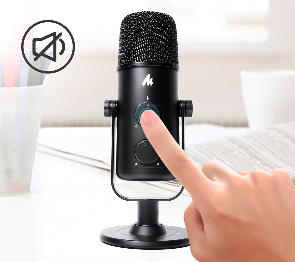 Maono AU-903 został wyposażony w złącze słuchawkowe, które pozwoli Ci na odsłuch w czasie rzeczywistym rejestrowanego dźwięku. Dzięki temu z łatwością zapanujesz nad swoim głosem i jego brzmieniem. Wyjątkowo przydatną funkcją jest pokrętło do regulacji głośności na słuchawkach, które po wciśnięciu może regulować również wzmocnienie mikrofonu. Z łatwością wyciszysz też mikrofon za pomocą jednego przycisku.