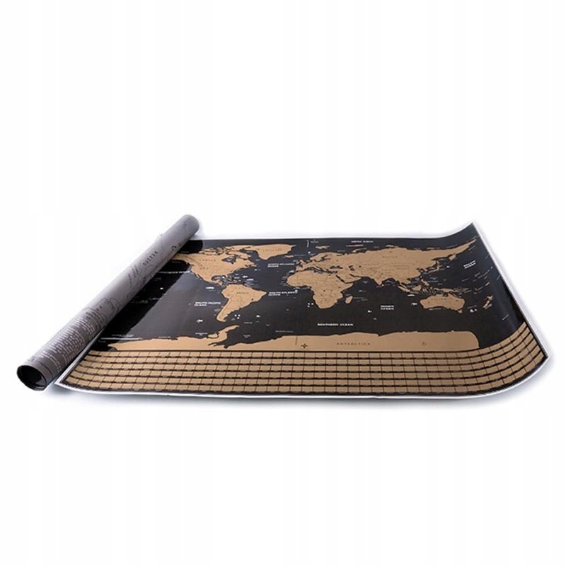 Mapa świata zdrapka do doskonały gadżet dla każdego podróżnika. Produkt jest wykonany klasycznie, kolor czarny został połączony ze złotym. Każde z państw oraz kontynentów zostało pokryte folią aluminiową do zdrapywania. Folia ma jednolity kolor, jednak po zdrapaniu pokażą się różne odcienie i dokładne kontury poszczególnych krajów. Papier z jakiego wykonano zdrapkę jest wykonany z odpowiedniej struktury, a jego jakość jest wysoka, dzięki czemu podczas zdrapywania nie ma ryzyka, że papier się uszkodzi i będzie wyglądał niekorzystnie,